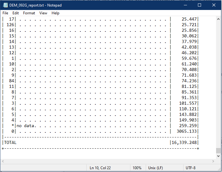 Scroll to the very bottom and we will see the total area covered by the raster file.